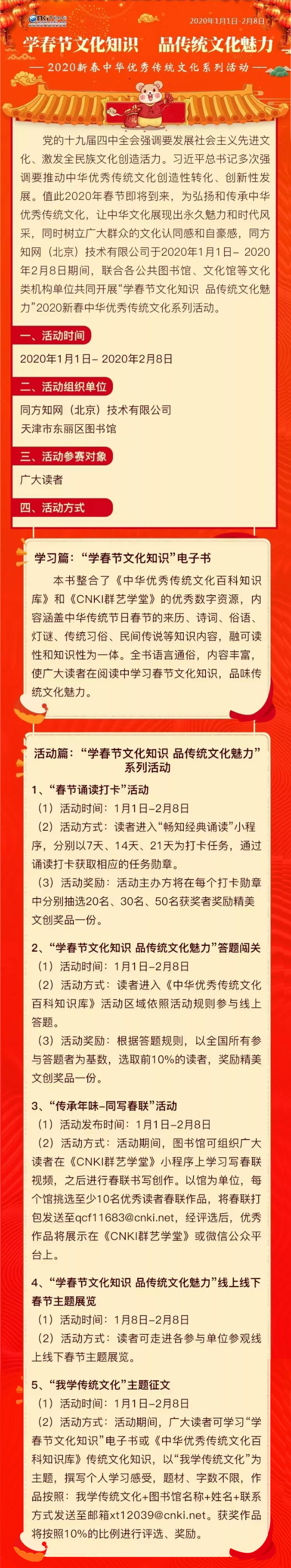 “学春节文化知识 品传统文化魅力”东丽区图书馆2020新春中华优秀传统文化系列活动开始啦!