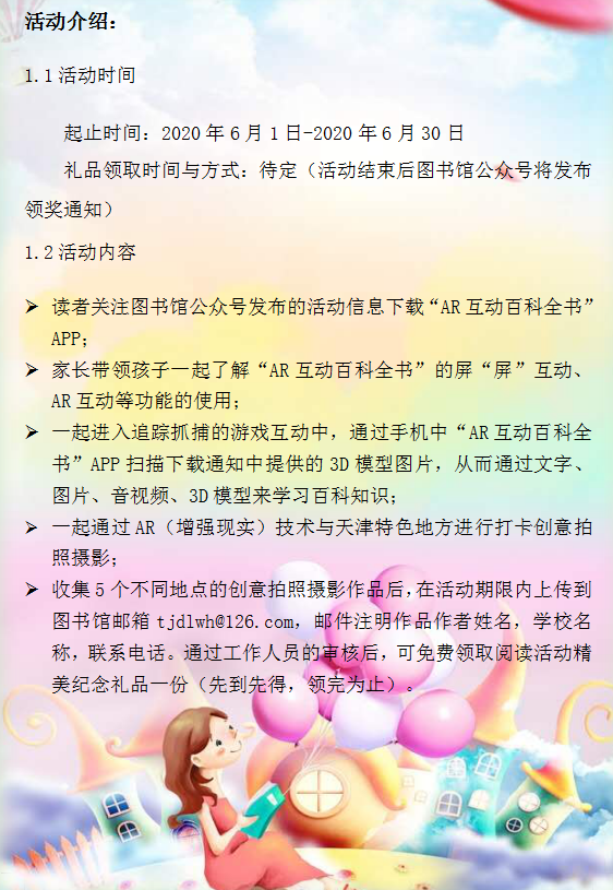 万物复苏,正是走进大自然的好时节,带着我们的“3D小宠物”走进天津文化特色的地方,在游中了解地域文化知识,在玩中学习百科知识(例如:天津之眼摩天轮、古文化街、五大道、瓷房子、公园、科技馆、博物馆、图书馆等等)。通过“AR互动百科全书”APP中的3D模型进行趣味打卡创意拍照摄影,小读者在通过AR技术的体验中,从不同角度感受不一样的风景,在激发孩子丰富创造力和想象力的同时,培养孩子们爱祖国、爱家乡的社会主义核心价值观。