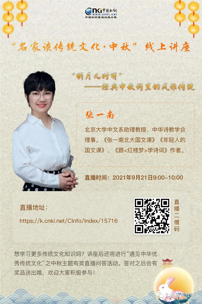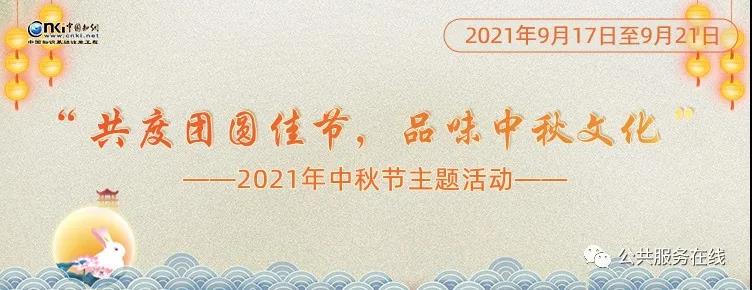 平分秋色一轮满,长伴云衢千里明。中秋节作为中华民族的传统佳节以月之圆兆人之团圆,是家家户户享受家庭团圆,一解乡愁的日子。为了助力公共图书馆中秋传统文化主题读者服务的推广,让广大群众进一步了解中国优秀的传统文化,提高节日氛围,增加群众对中秋佳节的参与感,从而进一步提高人民群众对传统文化的文化自信,2021年9月17日-9月21日。东丽区图书馆联合同方知网(北京)技术有限公司将共同开展“共度团圆佳节,品味中秋文化”2021中秋节主题活动。