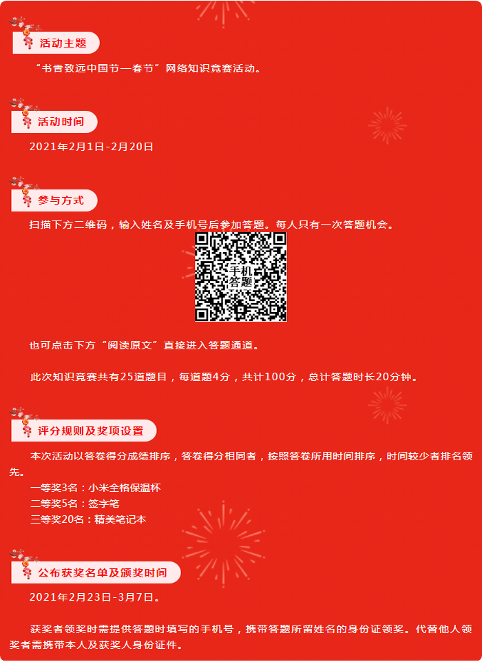 点击“阅读原文”,进入“书香致远中国节—春节”网络知识竞赛答题入口