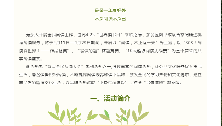 世界读书日│东丽区图书馆“阅读,不只这一天”系列阅读活动来袭
