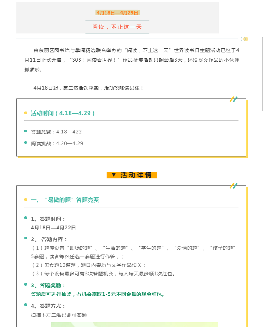 “阅读,不止这一天”活动继续,答题抽红包、阅读赢好礼