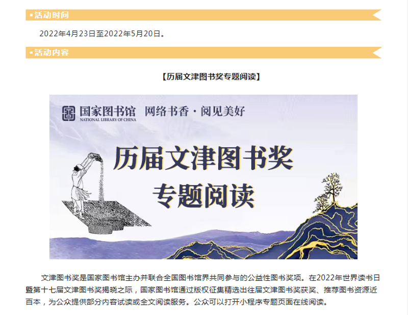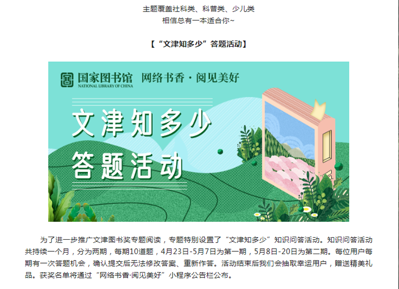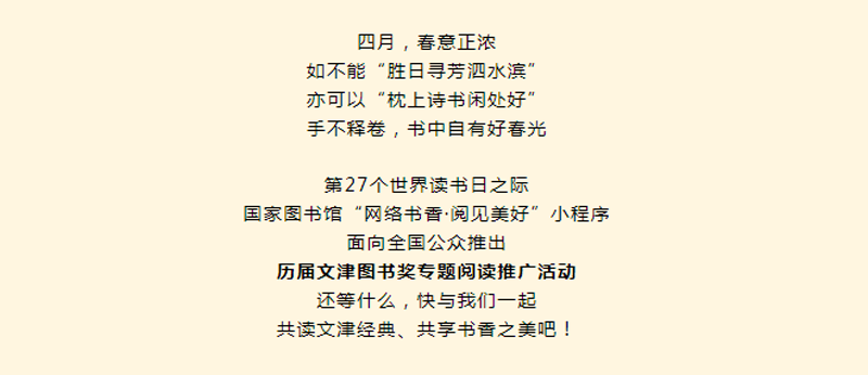 “网络书香·阅见美好”小程序邀你来读文津图书啦!