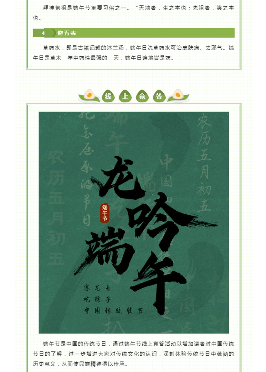 【我们的节日——端午节线上活动】| 书香雅韵小课堂线上竞答活动邀您参加