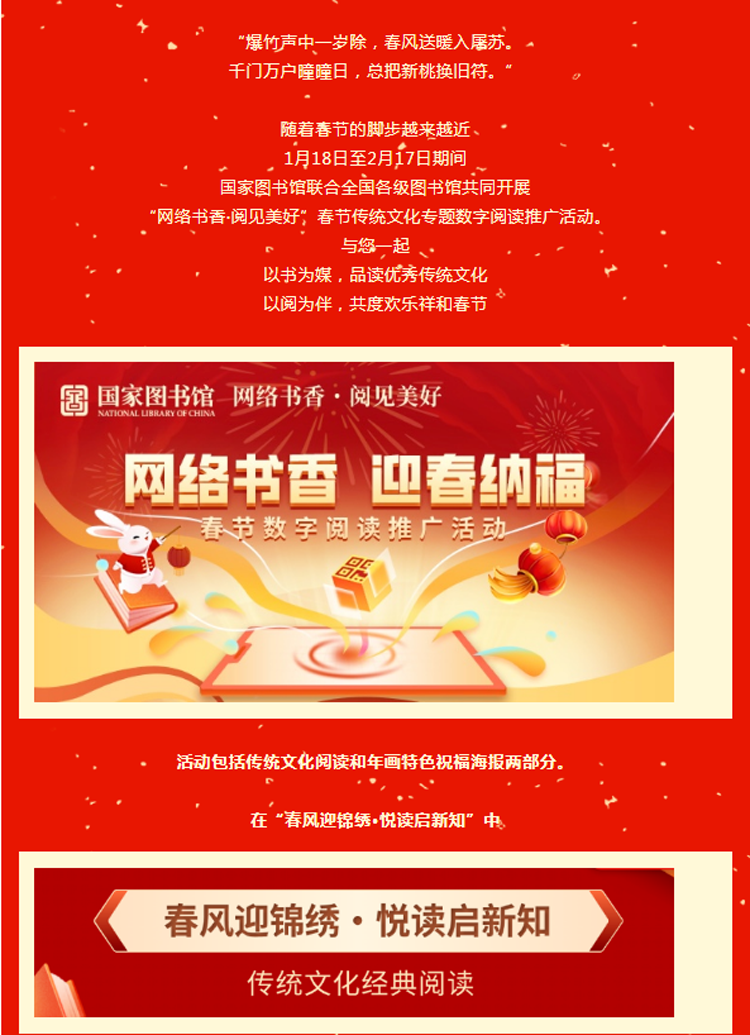 【数字文化传播】|“网络书香 迎春纳福”传统文化专题数字阅读活动,陪您过春节!