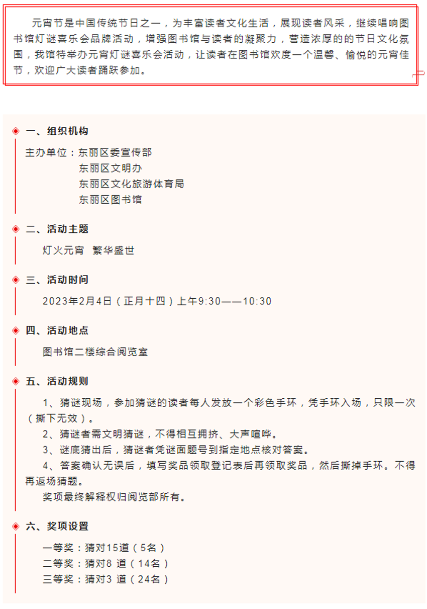 【我们的节日】| “灯火元宵 繁华盛世”——东丽区图书馆元宵灯谜喜乐会活动诚邀您参加