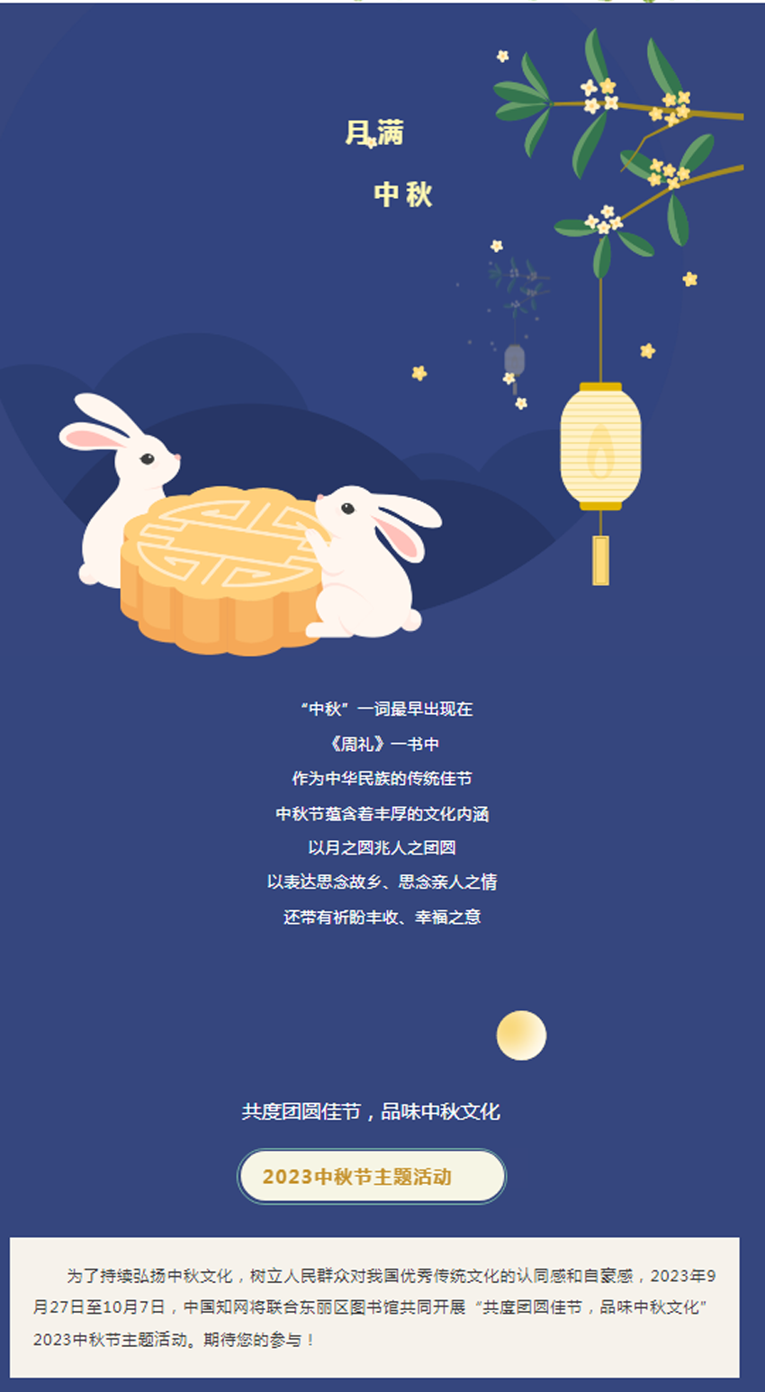 【全民阅读】 | “共度团圆佳节,品味中秋文化”2023中秋节主题活动邀您参加