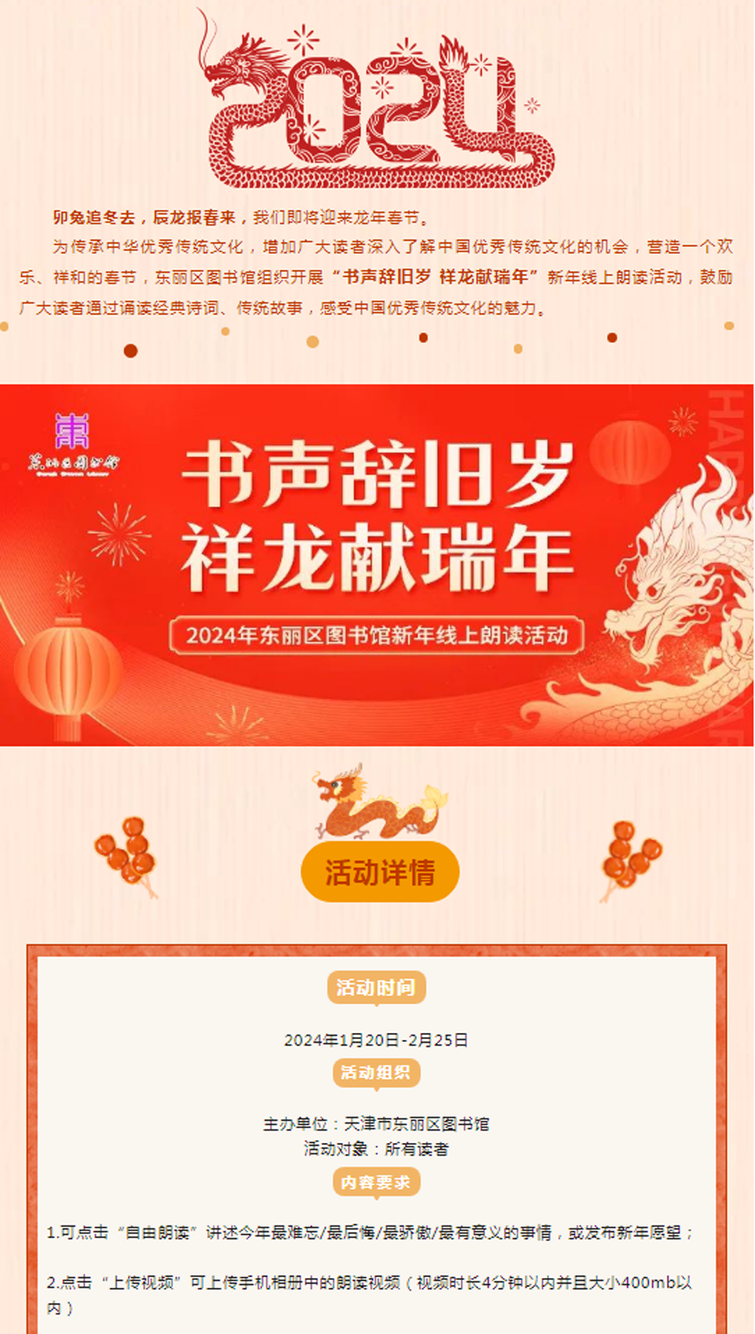 【活动预告】| 等你留声!东丽区图书馆新年线上朗读活动,正式开启!