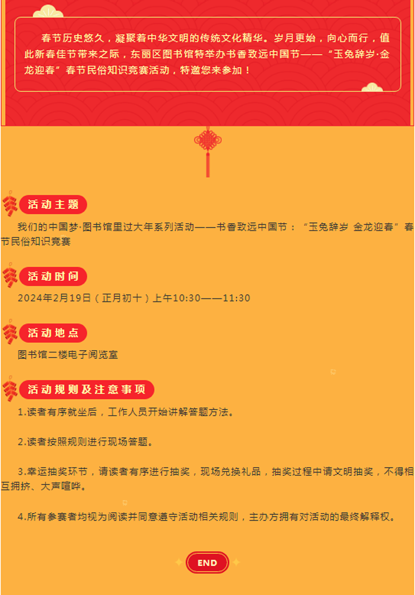 【我们的中国梦·图书馆里过大年系列活动】| 书香致远中国节——“玉兔辞岁 金龙迎春”春节民俗知识竞赛活动诚邀您参加