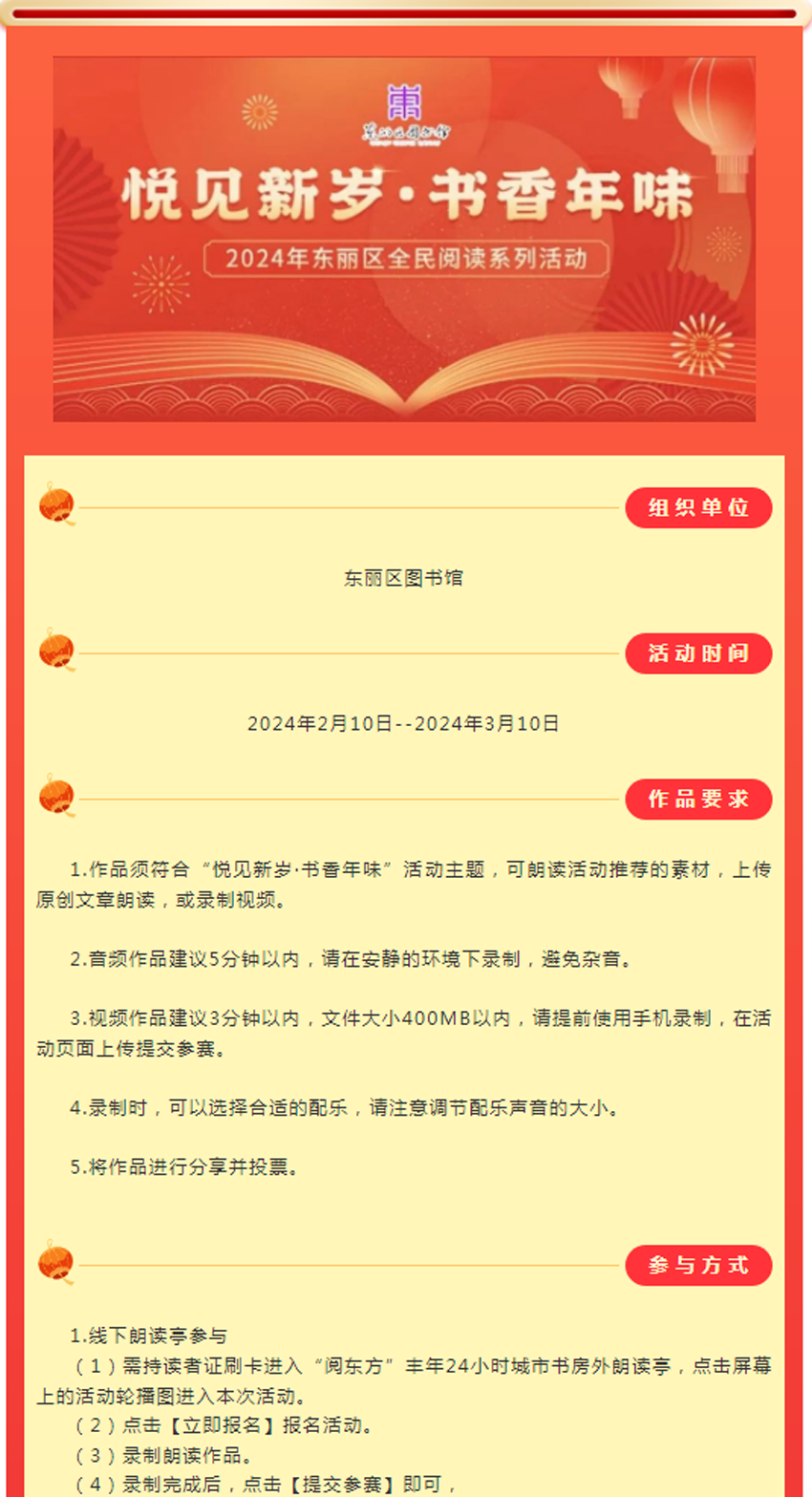 【我们的中国梦·图书馆里过大年系列活动】| 2024年东丽区全民阅读系列活动之“悦见新岁·书香年味”线上诵读活动