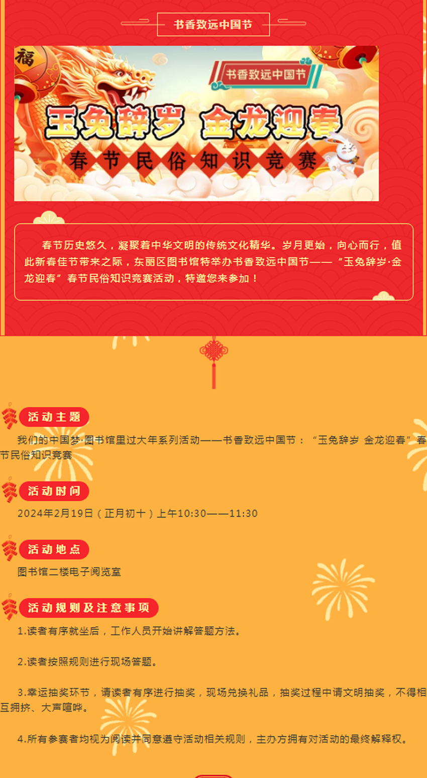 【我们的中国梦·图书馆里过大年系列活动】| 书香致远中国节——“玉兔辞岁 金龙迎春”春节民俗知识竞赛活动诚邀您参加