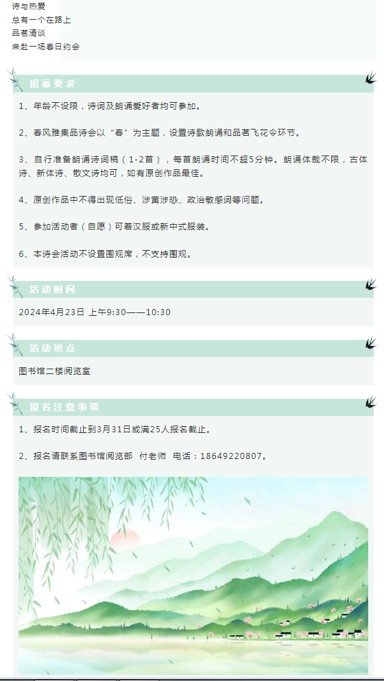 【世界读书日系列活动】| “品”春天 沐书香——东丽图书馆春风雅集品诗会招募中