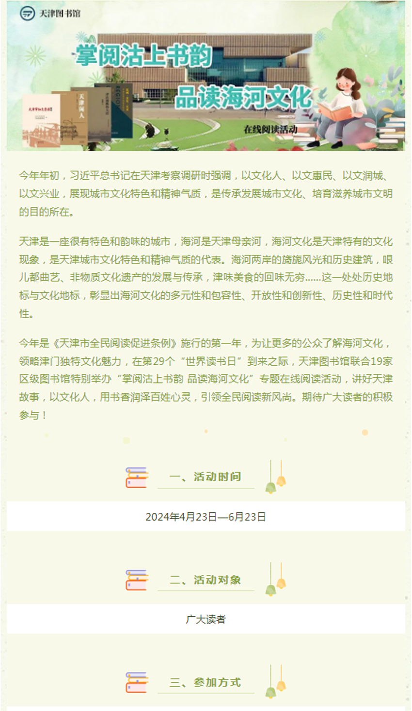 【世界读书日系列活动】| “掌阅沽上书韵 品读海河文化”专题在线阅读活动