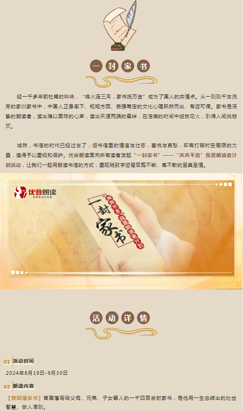 【活动通知】| 一封家书—— “声声不息”我是朗读者计划