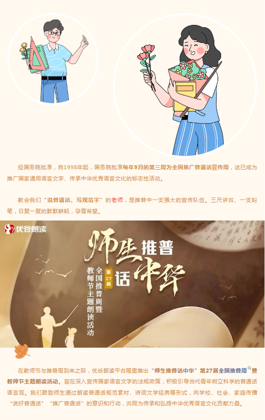 【活动通知】| 师生推普话中华——第27届全国推普周暨教师节主题朗读活动上线啦