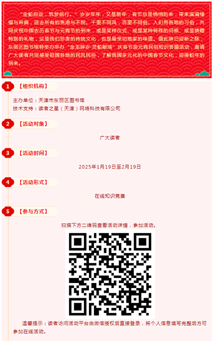 【活动通知】| 书香致远中国节——“金龙辞岁·灵蛇献瑞”庆新春迎元宵民俗知识答题活动