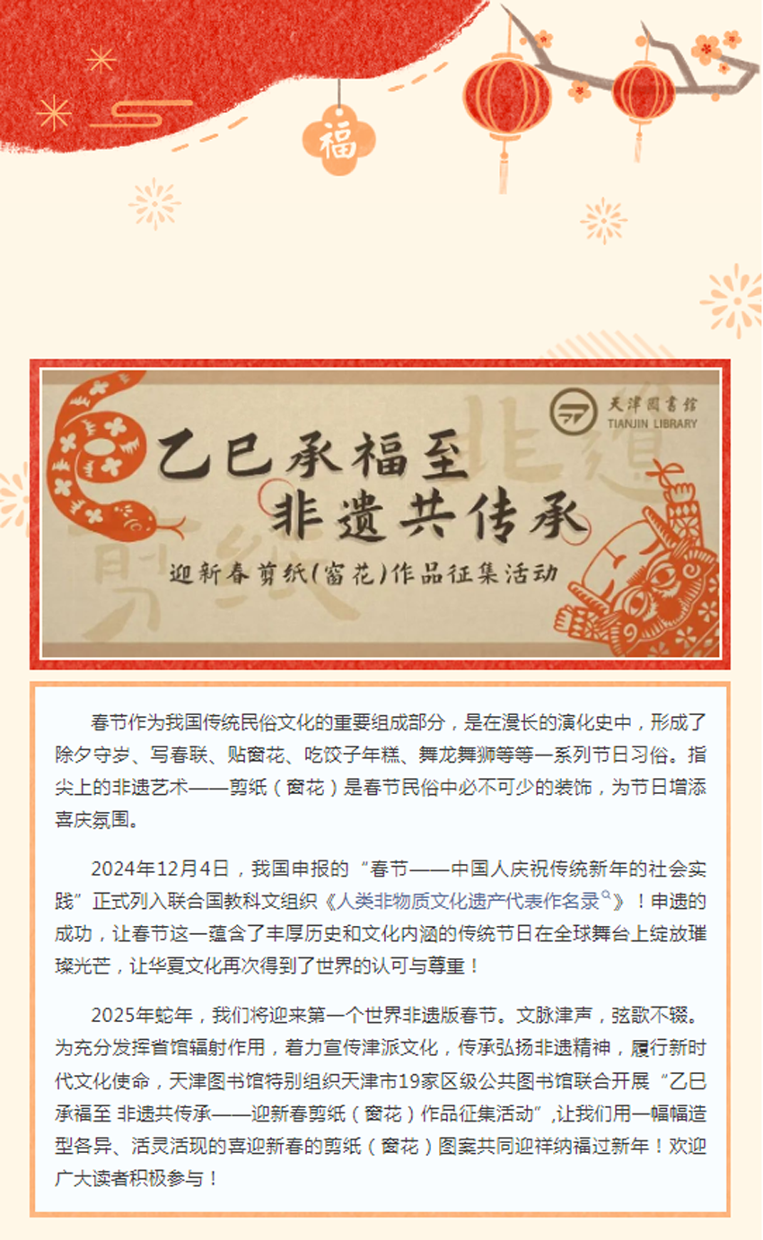 【活动通知】| 乙巳承福至 非遗共传承——迎新春剪纸(窗花)作品征集活动