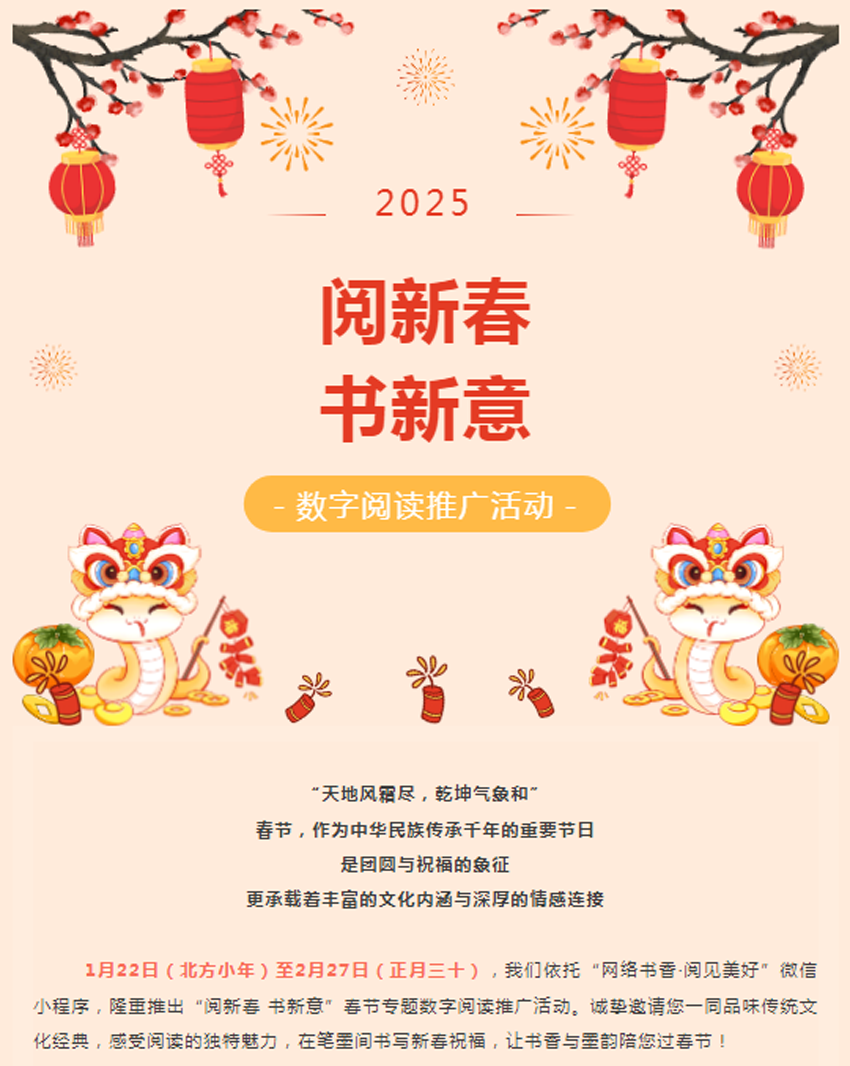 【网络书香·阅见美好】| 快来参与“阅新春 书新意”数字阅读推广活动,开启春节传统文化之旅!