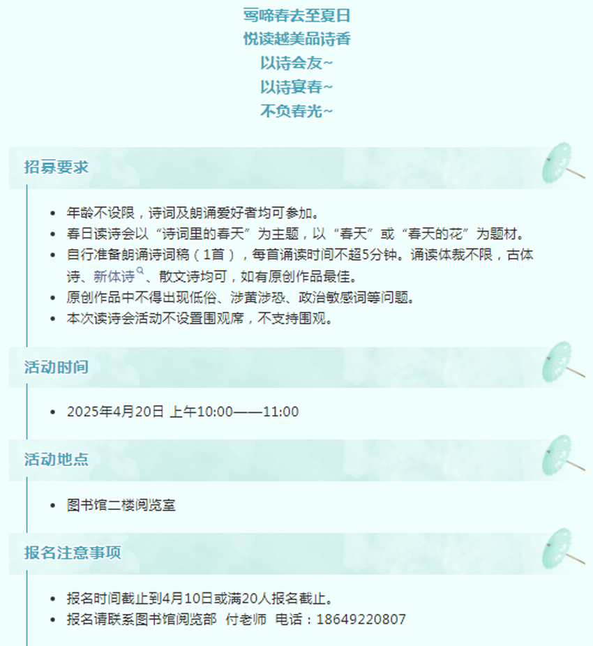 【活动通知】| 诗韵流长·文脉永续——“诗词里的春天”东丽图书馆春日读诗会招募中