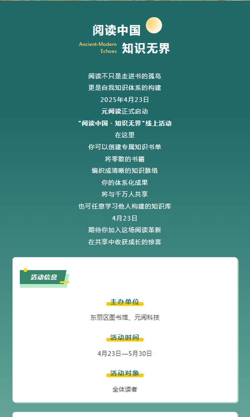 【活动通知】| 我们的中国梦·文化进万家——东丽区图书馆4.23系列活动之“阅读中国·知识无界”活动开启