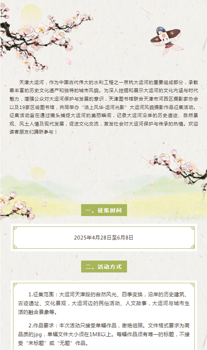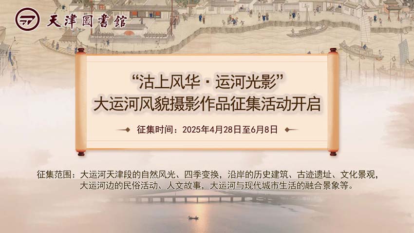 【活动通知】| 我们的中国梦·文化进万家:东丽区图书馆世界读书日系列活动之“沽上风华·运河光影”大运河风貌摄影作品征集活动开启