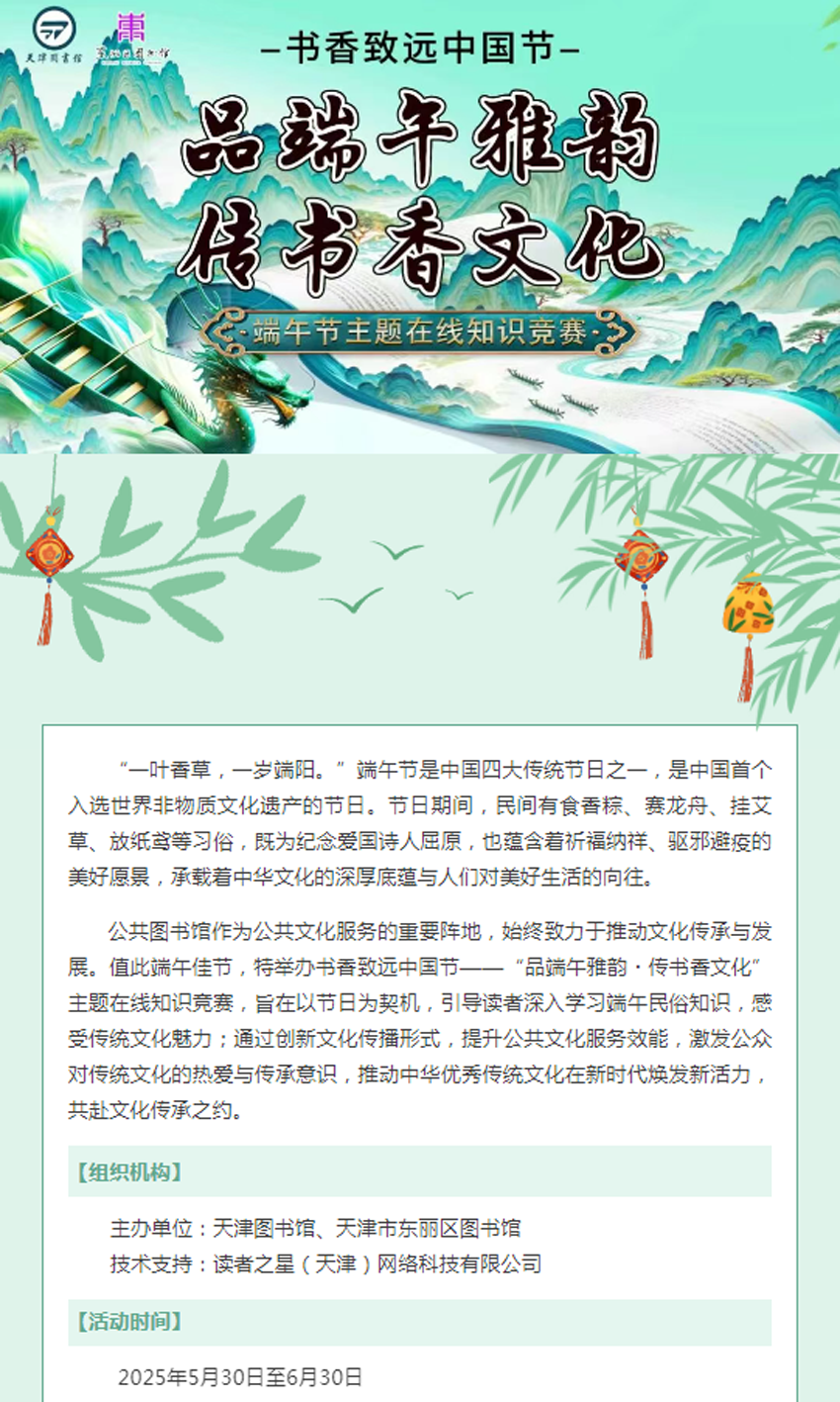 【活动通知】| 书香致远中国节——“品端午雅韵·传书香文化”端午节主题在线知识竞赛