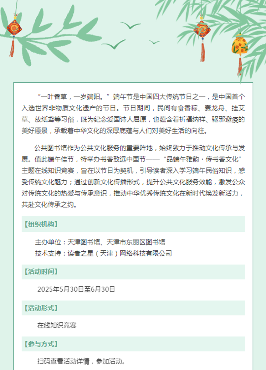 【活动通知】| 书香致远中国节——“品端午雅韵·传书香文化”端午节主题在线知识竞赛火热进行中