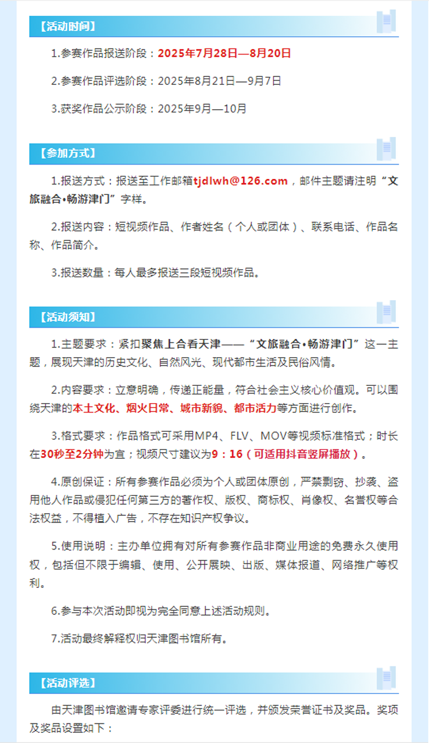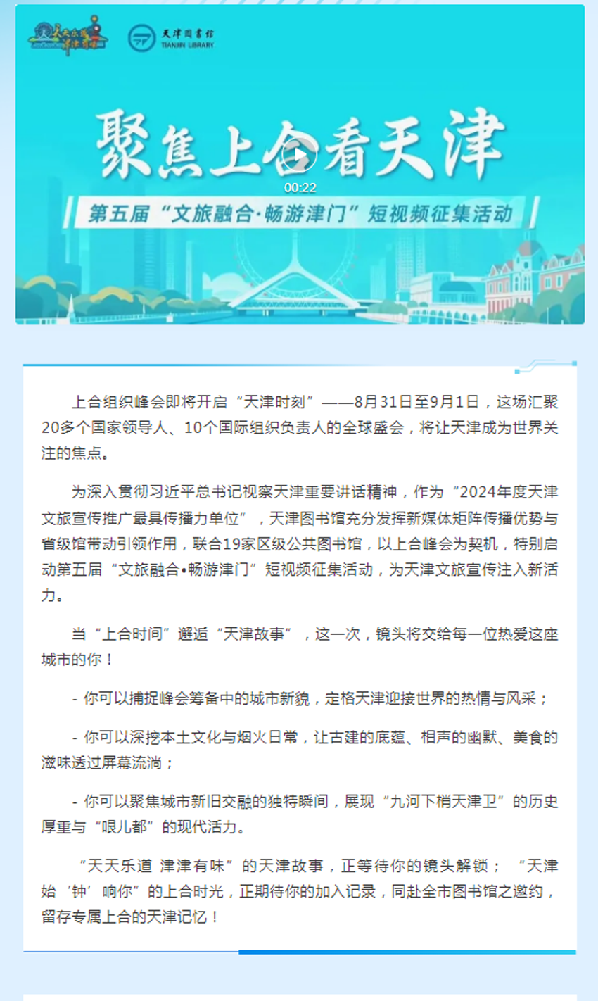 【活动通知】| 聚焦上合看天津——第五届“文旅融合·畅游津门”短视频征集活动火热进行中