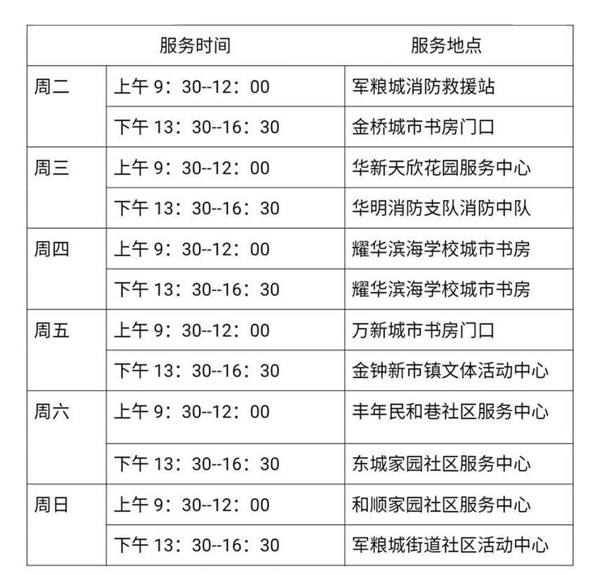 10月13日—10月18日流动图书车服务时间地点公布如下,如有社区、单位需要图书车上门服务请与杜俊老师联系,联系电话:18522291388。