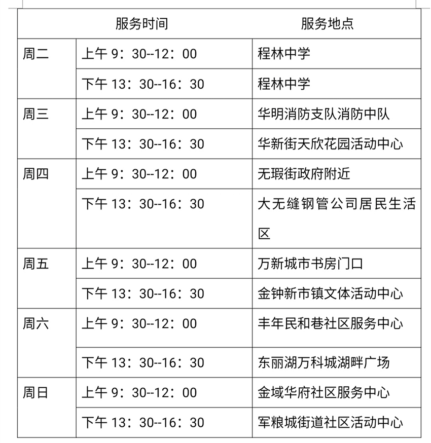11月17日—11月22日流动图书车服务时间地点公布如下,如有社区、单位需要图书车上门服务请与杜俊老师联系,联系电话:18522291388。