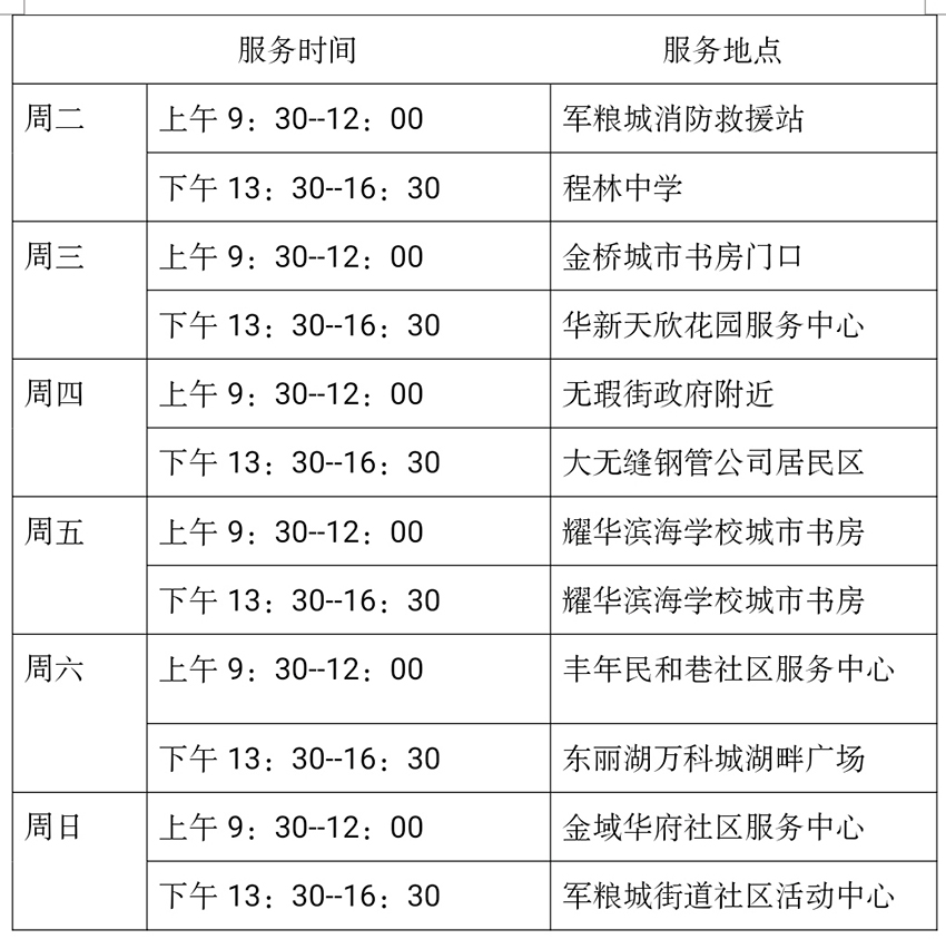 东丽区图书馆流动服务车服务时间地点(12月15日—12月20日)