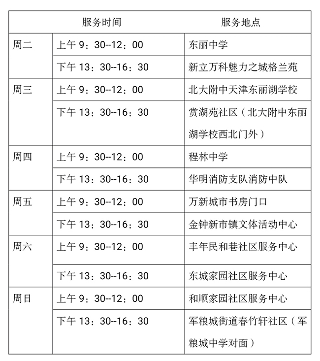 1月5日—1月10日流动图书车服务时间地点公布如下,如有社区、单位需要图书车上门服务请与杜俊老师联系,联系电话:18522291388。
