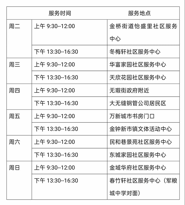 2月23日—2月28日流动图书车服务时间地点公布如下,如有社区、单位需要图书车上门服务请与杜俊老师联系,联系电话:18522291388。