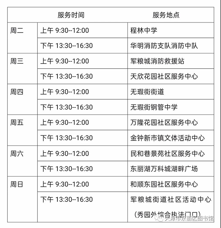 4月13日—4月18日流动图书车服务时间地点公布如下,如有社区、单位需要图书车上门服务请与杜俊老师联系,联系电话:18522291388。