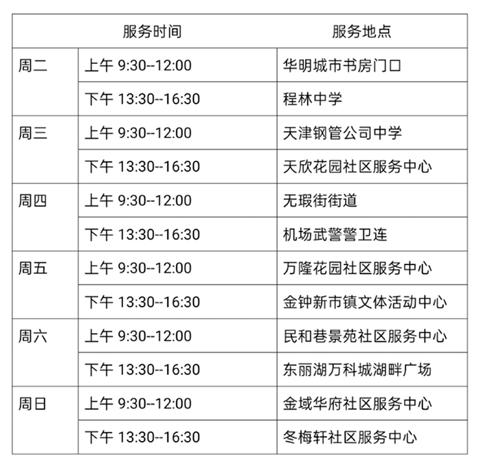 6月8日—6月13日流动图书车服务时间地点公布如下,如有社区、单位需要图书车上门服务请与杜俊老师联系,联系电话:18522291388。
