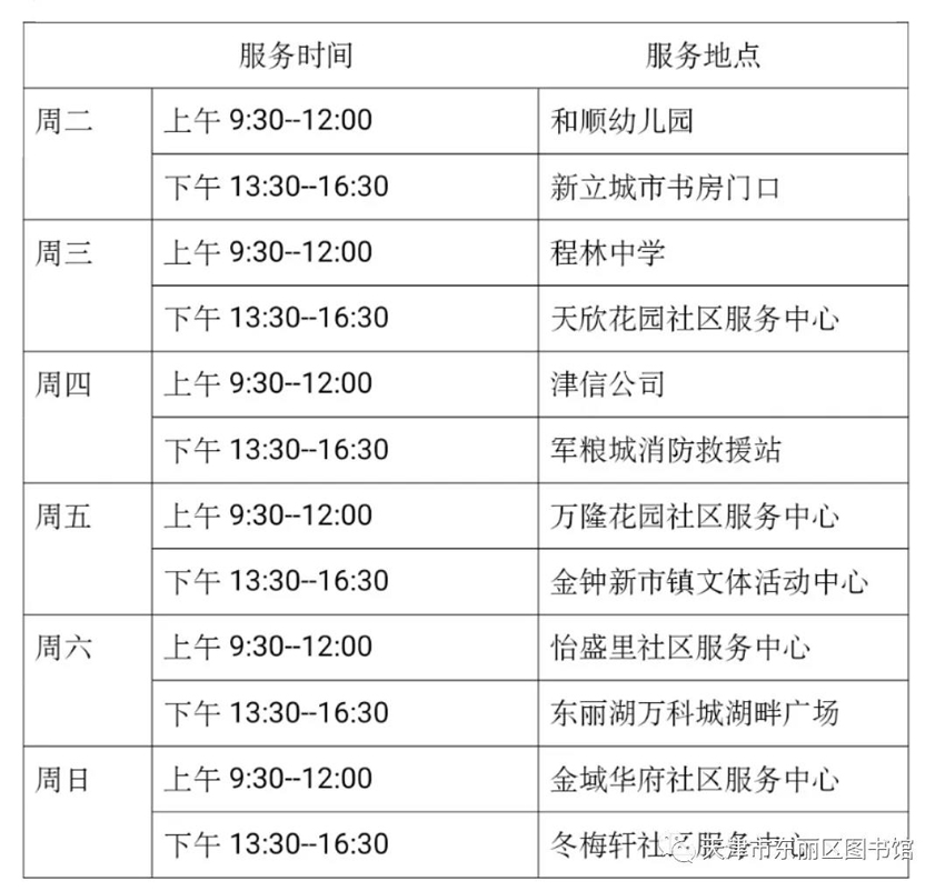9月28日—10月3日流动图书车服务时间地点公布如下,如有社区、单位需要图书车上门服务请与杜俊老师联系,联系电话:18522291388。