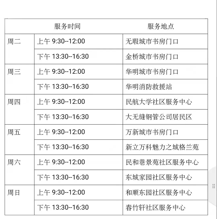 10月5日—10月10日流动图书车服务时间地点公布如下,如有社区、单位需要图书车上门服务请与杜俊老师联系,联系电话:18522291388。
