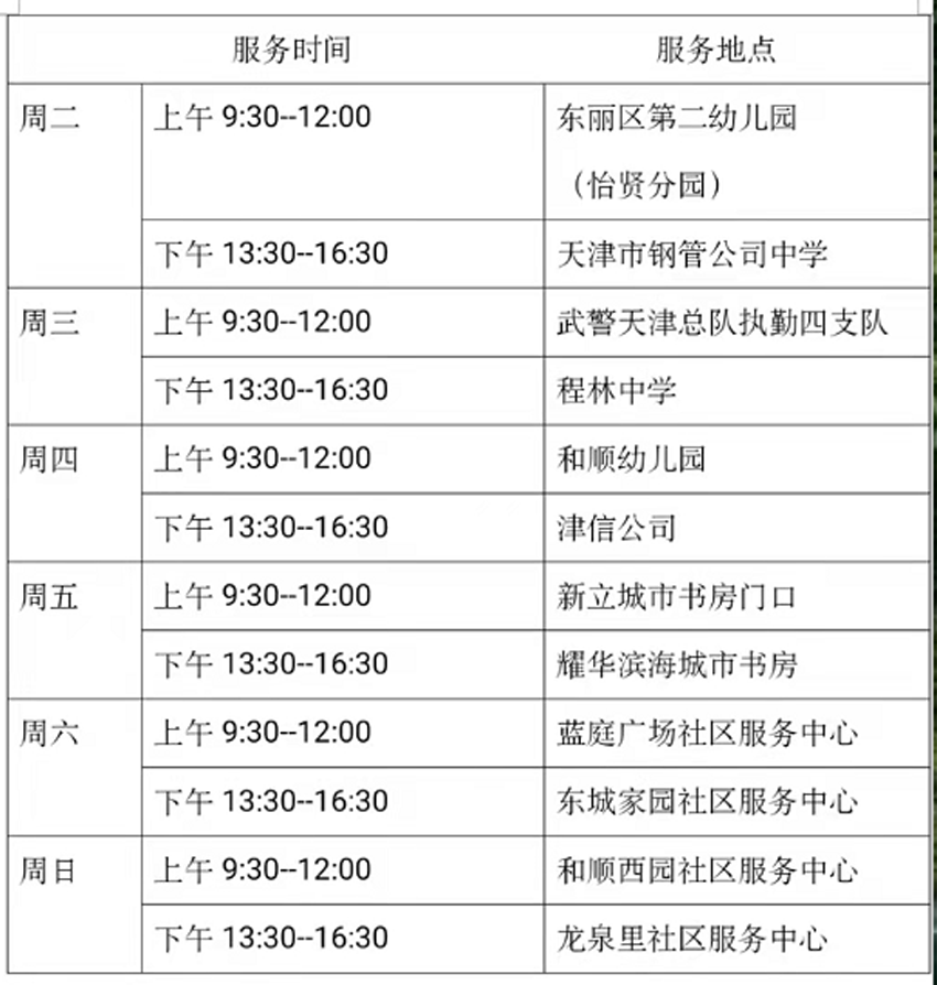 11月16日—11月21日流动图书车服务时间地点公布如下,如有社区、单位需要图书车上门服务请与杜俊老师联系,联系电话:18522291388。