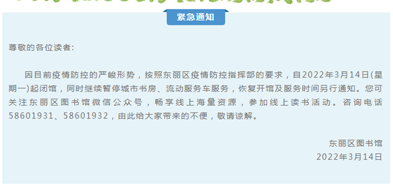 东丽区图书馆闭馆公告