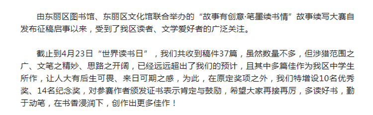 “故事有创意·笔墨续书情”故事续写大赛获奖名单揭晓