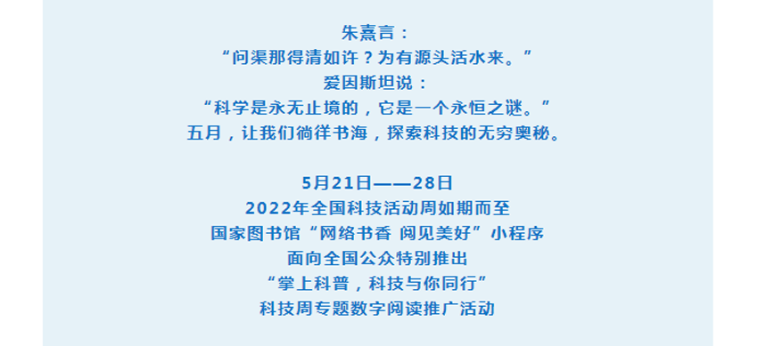 “掌上科普,科技与你同行”——科技周专题阅读活动来啦!