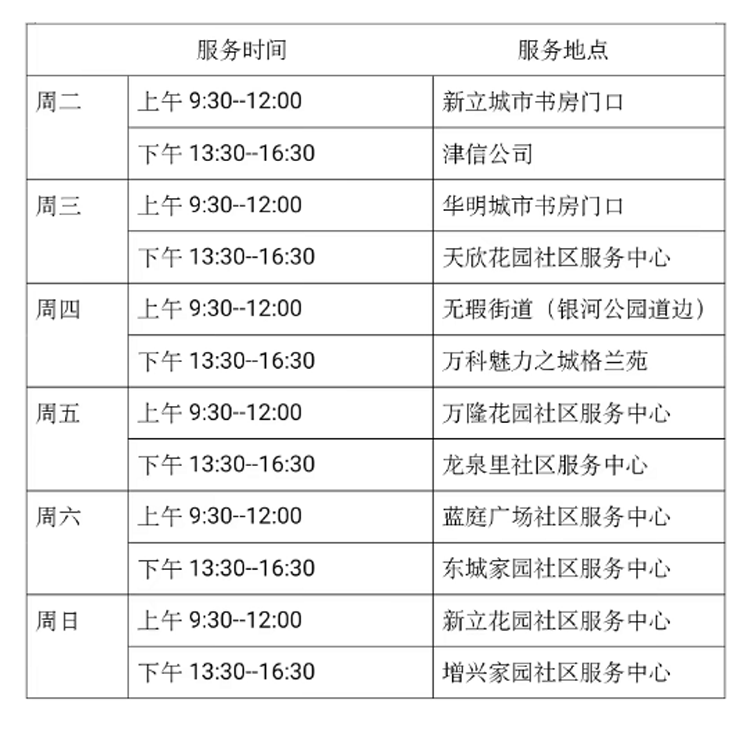 6月7日—6月12日流动图书车服务时间地点公布如下,如有社区、单位需要图书车上门服务请与杜俊老师联系,联系电话:18522291388。