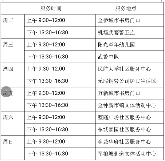 6月14日—6月19日流动图书车服务时间地点公布如下,如有社区、单位需要图书车上门服务请与杜俊老师联系,联系电话:18522291388。