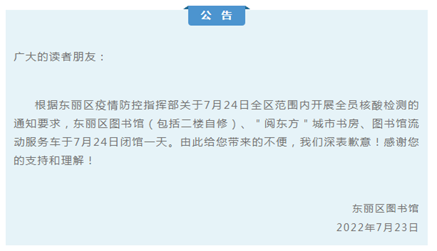 东丽图书馆闭馆公告