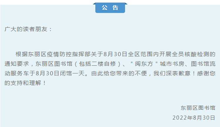 东丽图书馆临时闭馆公告