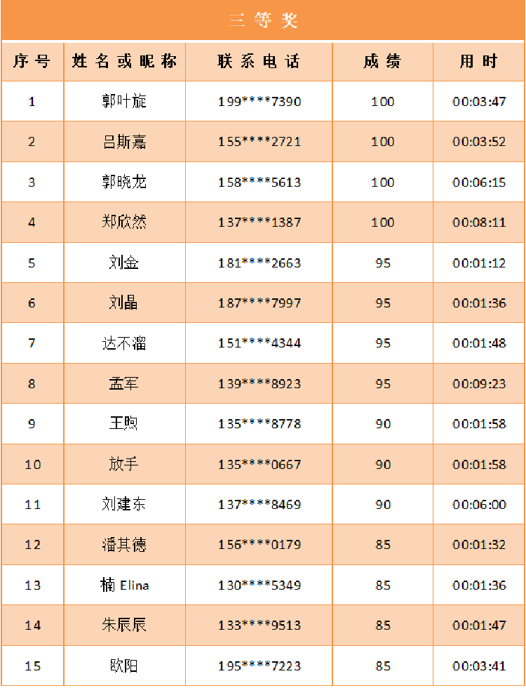 为了持续弘扬中秋文化,树立人民群众对我国优秀传统文化的认同感和自豪感。2022年9月10日-9月12日,东丽区图书馆联合中国知网举办了“书香致远中国节——“网络中国节· 中秋”知识竞赛主题活动,现将获奖名单公布如下: