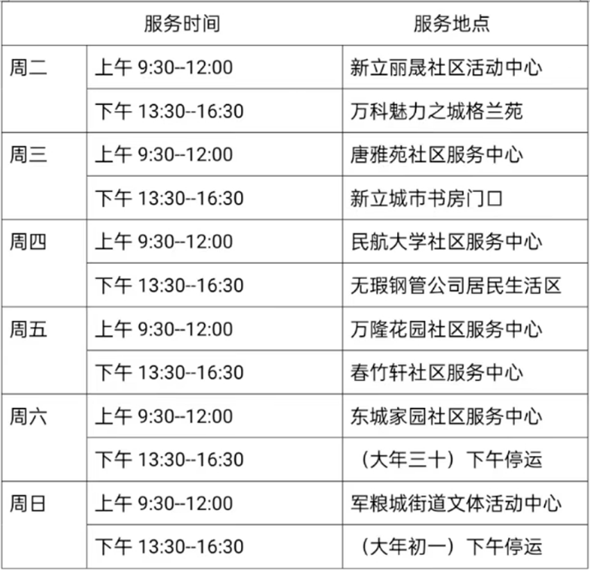 1月17日—1月22日流动图书车服务时间地点公布如下,如有疫情随时调整。社区、单位需要图书车上门服务请与杜俊老师联系,联系电话:18522291388。