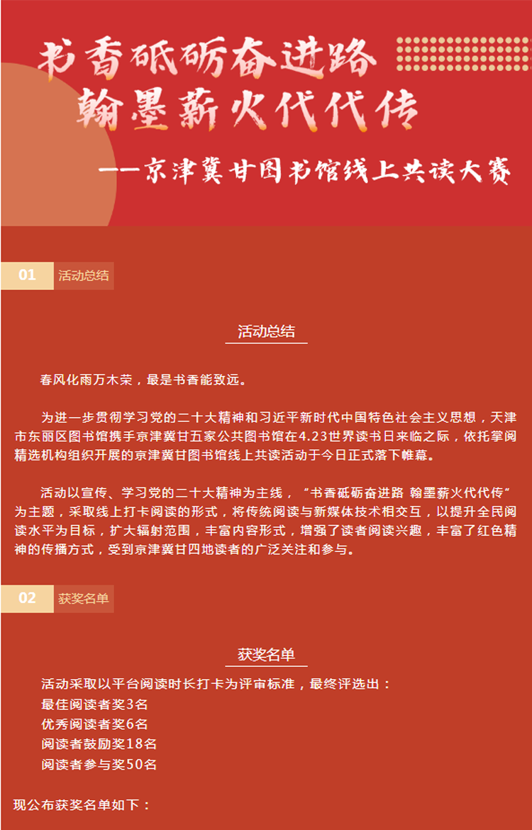“书香砥砺奋进路,翰墨薪火代代传” ——京津冀甘图书馆线上共读大赛 获奖名单