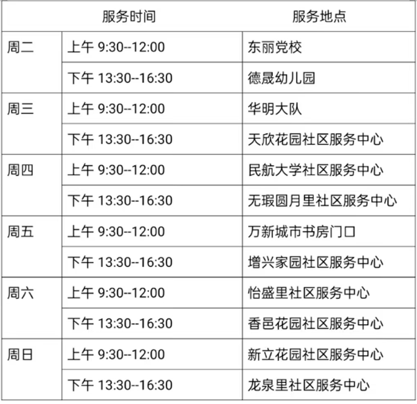 东丽区图书馆流动服务车服务时间地点(6月20日—6月25日)