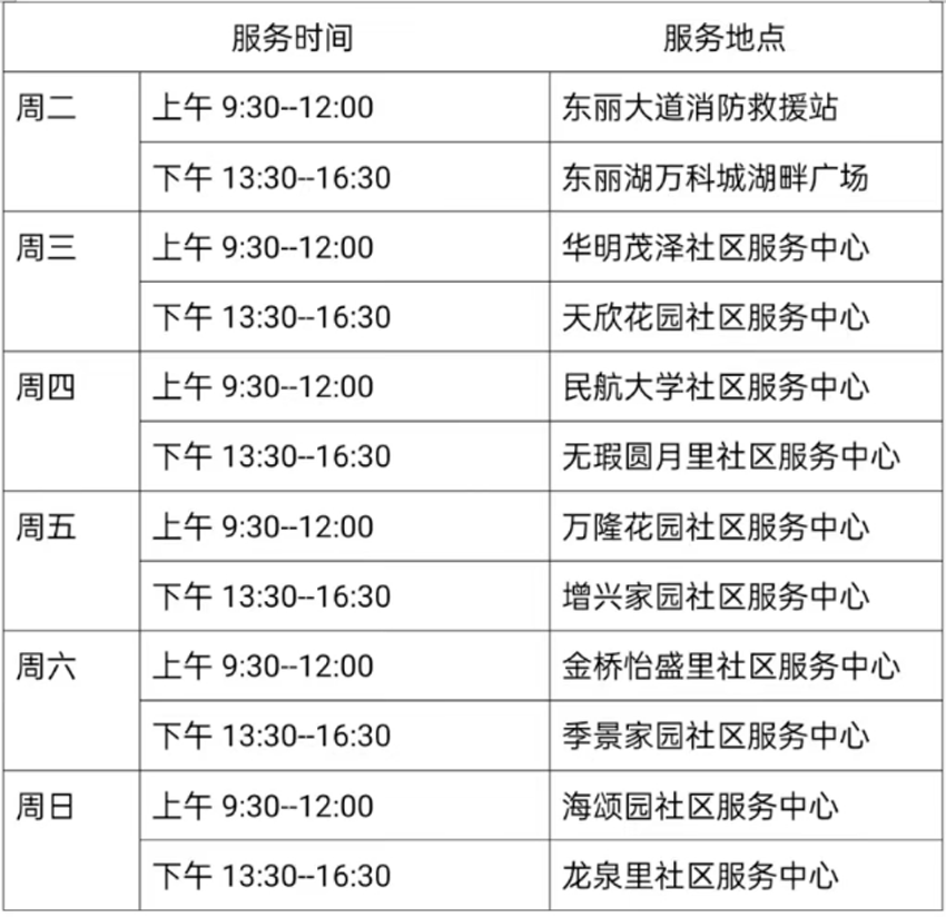 7月11日—7月16日东丽区图书馆流动服务车服务时间地点公布如下。社区、单位需要服务车上门服务请与杜俊老师联系,联系电话:18522291388。